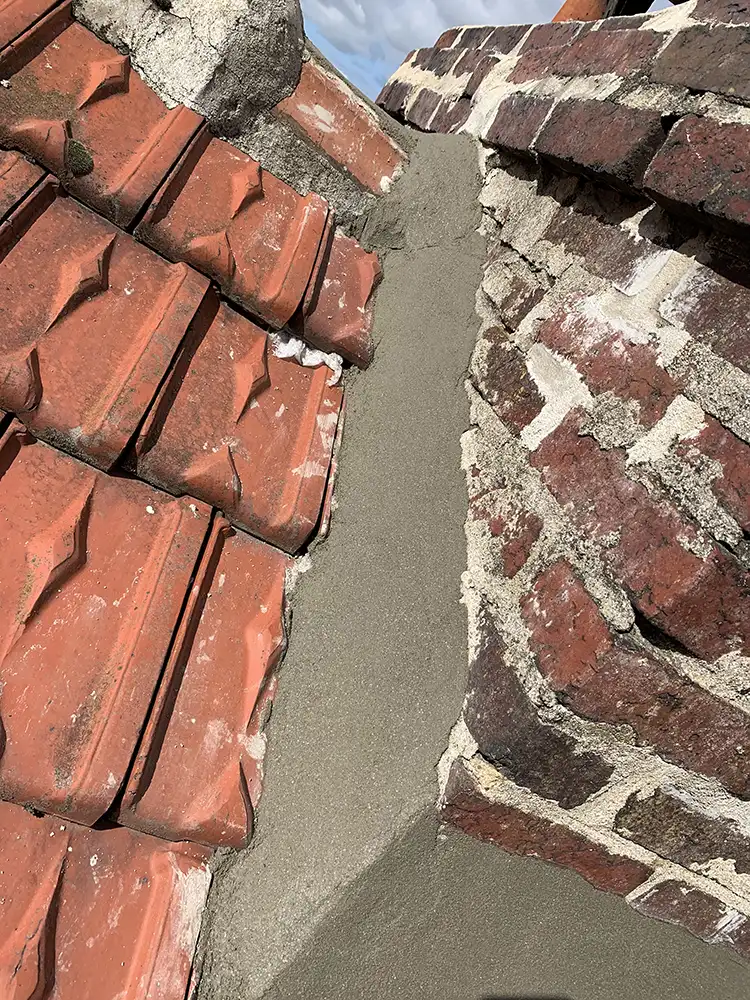 Nous avons appliqué un mortier de haute qualité pour reconstruire et consolider les pieds de cheminée. Cette intervention permet :